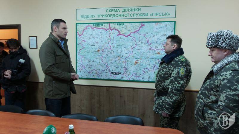 16-го марта Виталий Кличко встретился с личным составом пограничной заставы Горск в Черниговский области и посетил знаменитый"монумент Дружбы"на границе Украины, России и Беларуси.