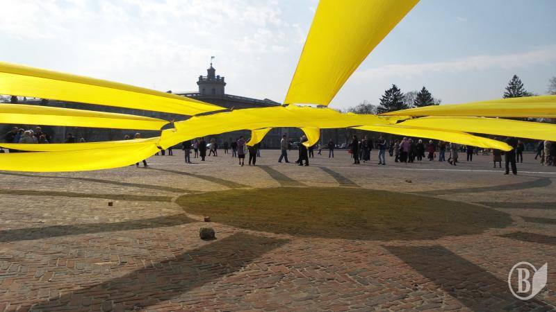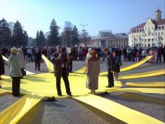 На віче також виступили організатори флеш-мобу "Соце правди сходить над Чернігівщиню". Кожен промінь цього сонця має довжину 9 метрів і 70 сантиметрів.