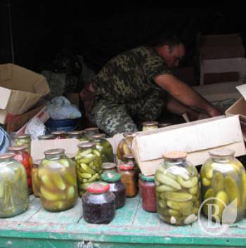Призыв не остался без внимания. Люди приносили, у кого что есть: огурцы, помидоры, варения, салаты.