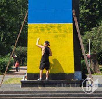Как сообщал, «Высокий Вал» группа энтузиастов разрисовывает город в национальные цвета и патриотические граффити.