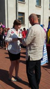 Урочиста церемонія підняття Державного Прапора України та акція “Я – громадянин України” з врученням паспортів України відбувається в Чернігові на Красній площі.