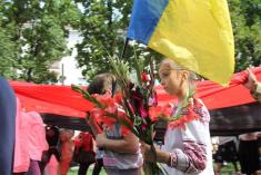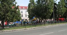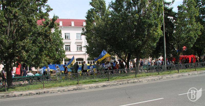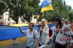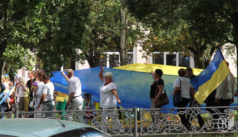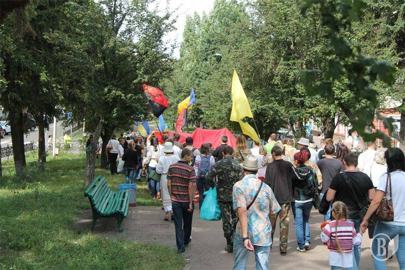 Черниговские патриоты по окончании официальных мероприятий 24 августа прошли с государственным сине-желтым флагом и флагом украинских националистов по центральной аллее города.