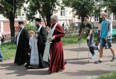 Среди участников шествия - священники, жители города, дети.