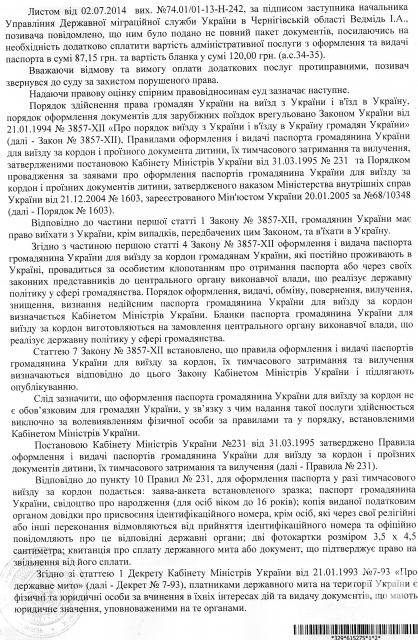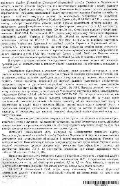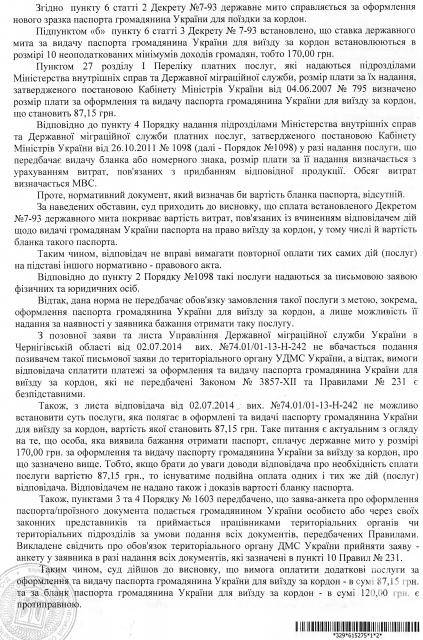 Но работники управления ГМС в Черниговской области отказали ему в выдаче заграничного паспорту на основании поданных документов, требуя доплатить 87,15 грн. за услуги и за бланк паспорта - 120 грн.