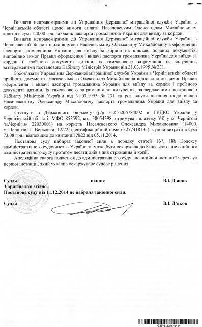 Поки рішення набурає сили, після будемо звертатися повторно до ДМС для видачі паспорта за законну вартість!