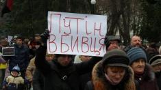 Жители города указали на палача украинского народа. Женщины, мужчины и дети почтили память жертв русской военной агрессии.