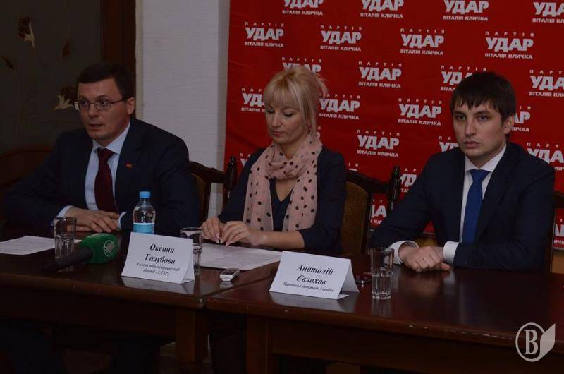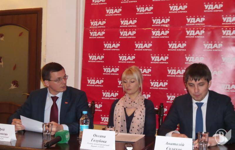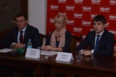 А о предвыборной стратегии УДАРА на местных выборах рассказали журналистам председатель областной организации Юрий Тарасовец, новоизбранный глава городской организации Оксана Голубова и депутат Верховной Рады Украины по избирательному округу № 207 – Антатолий Евлахов.