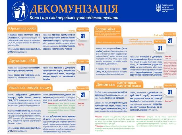 Стоит отметить, что эта процедура не будет стоить много денег и делается по мере финансовой возможности бюджетов. Закон определяет, что за 6 месяцев нужно принять решения о переименовывании и демонтаже органами местного самоуправления.