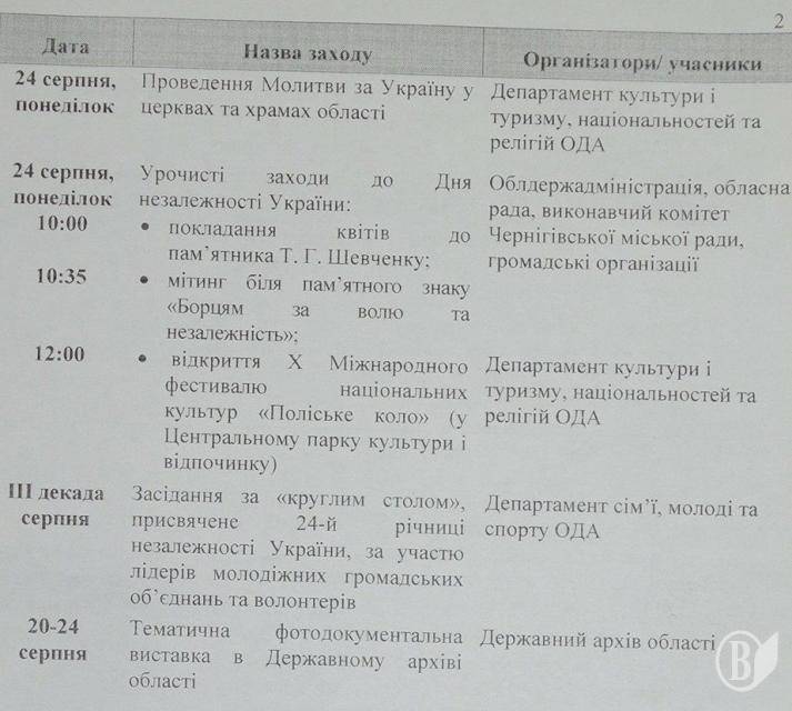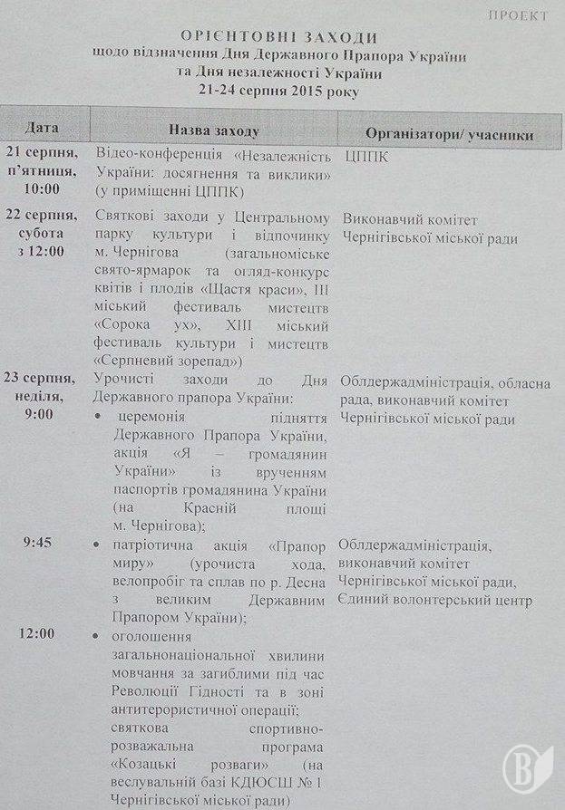 Не буде «засідалова» перед Днем Незалежності в Чернігові