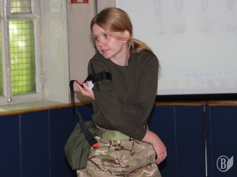Волонтерка Катерина Дорохіна розповіла, що цього року вона вже провела понад 70 занять для військовиків, зокрема, досить багато - в зоні антитерористичної операції. Також, Катя збирає та передає солдатам індивідуальні аптечки за стандартами НАТО. Небайдужі люди пересилають Катерині кошти. Потім дівчина закуповує необхідні медикаменти і розкладає їх у спеціальні сумки, які волонтери шиють за спеціальними лекалами.