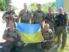 На час перебування в зоні АТО припало святкування Дня Незалежності та Дня Прапора. Відзначали з особливим піднесенням. Податківці-добровольці зробили фотосесію - на фоні державного прапора.