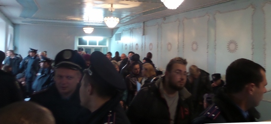 Вчера, за наблюдениями «Свобода. ФМ» в Черниговском городском дворце культуры, фойе, напоминало в 9 часов утра управление милиции перед выходом на дежурство. Там и рядом с сооружением находилась около сотни милиционеров.