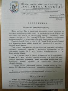 «На вас последняя надежда: нам жить негде. Возьмите под личный контроль решение этой проблемы. Есть инвестор, который хочет достроить. Помогите, у вас в руках есть все для этого. Иначе, мы в канун Нового года просто заселимся в 6-этажный недостроенный дом на Масанах, выведем «буржуйки» в окна и будем жить», - заявили активисты В. Куличу и областному депутатскому корпусу еще на сессии.