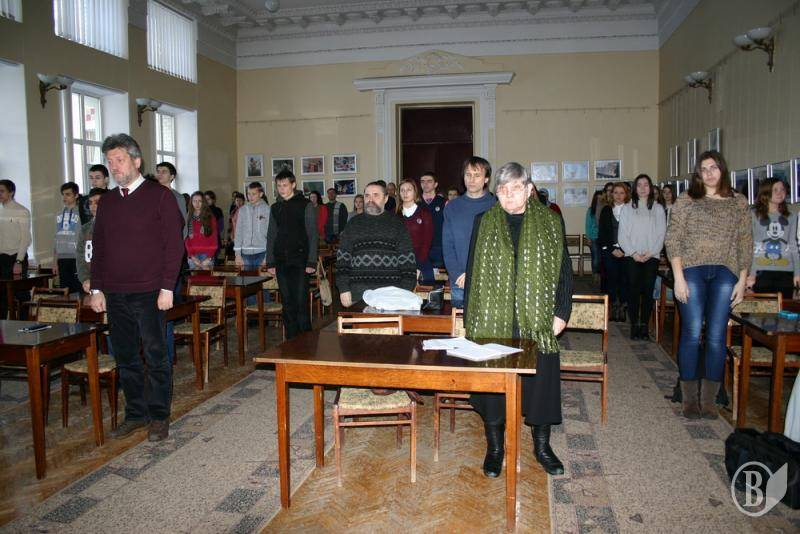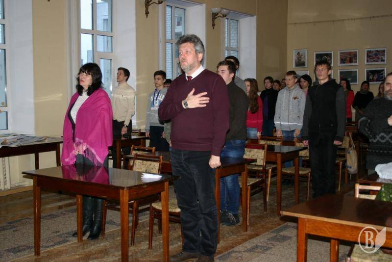 Участники мероприятия отметили минутой молчания память павших защитников государственного суверенитета и территориальной целостности Украинского государства: добровольцев из студенческой лавы – Вадима Жеребила, солдата добровольческого батальона «Айдар», уроженца г. Мена Черниговской области, и Владимира Близнюка, помощника гранатометчика 13-го батальона территориальной обороны уроженца г. Чернигов; всех 14 поименно названных Героев Украины, награжденных посмертно, среди них и Олега Михнюка, уроженца с. Малая Девица Прилуцкого района Черниговской области; последних защитников Донецкого аэропорта и всех украинских ГЕРОЕВ в этой оборонной войне.