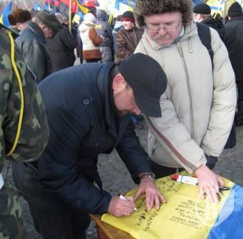 Свое пожелание написал и Владимир Вьятрович, историк, председатель Украинского института национальной памяти: «Героям современности – помните своих предшественников и побеждайте!»