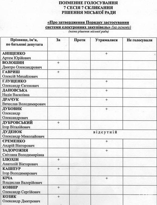 Секретар міської ради взагалі хотів зняти це питання з розгляду міської ради як то кажуть «до кращих часів». Та нам вдалося відстояти свою позицію і внести це питання до порядку денного. На сесії головна дискусія розгорнулася навколо мінімальних сум закупівель у «ProZorro». Запропонований до розгляду депутатам Порядок передбачав від 3 тисяч гривень для товарів та від 10 тисяч для робіт і послуг. Ці цифри не надумані, вони не впали з неба – ними, до прикладу, користуються Дніпропетровськ та Кіровоград, Чернігів, Київська міська державна адміністрація взагалі закуповує всі товари і послуги від нуля гривень через електронні аукціони.