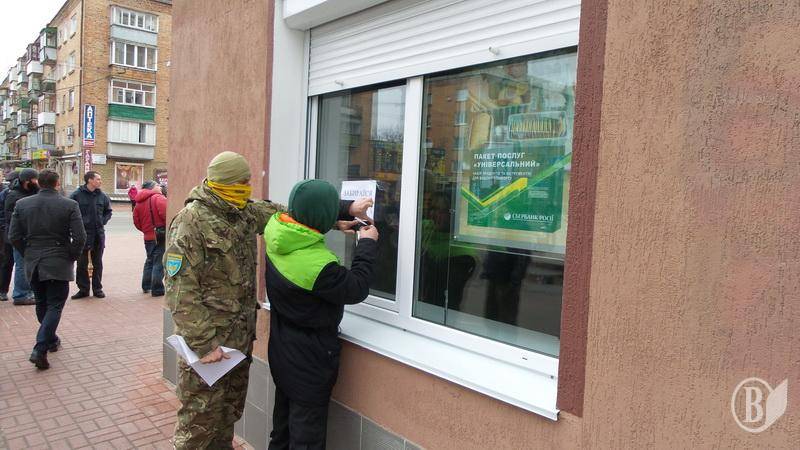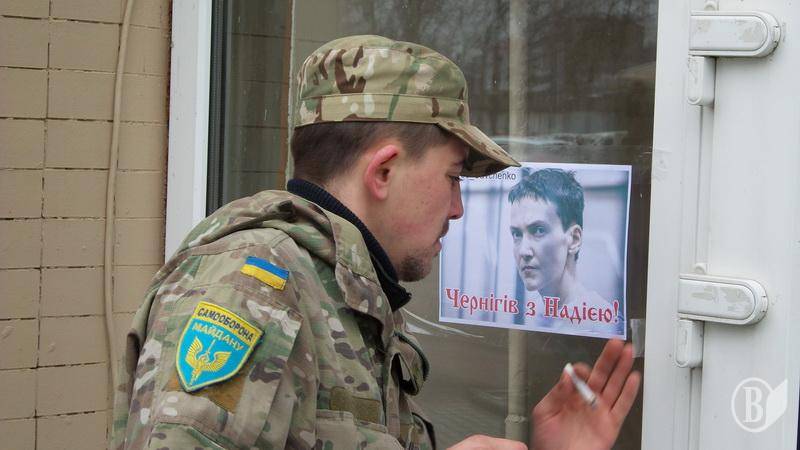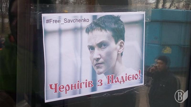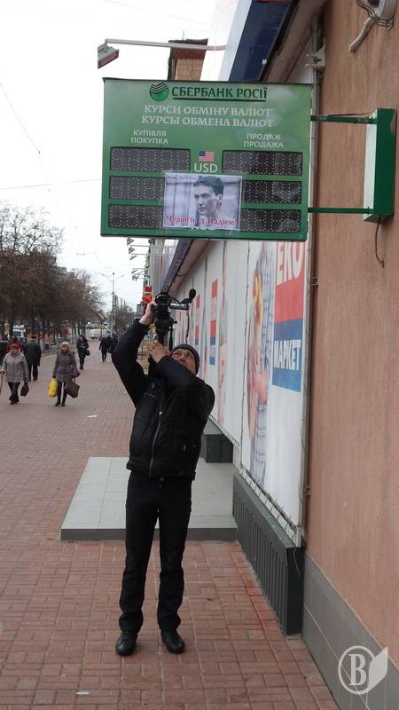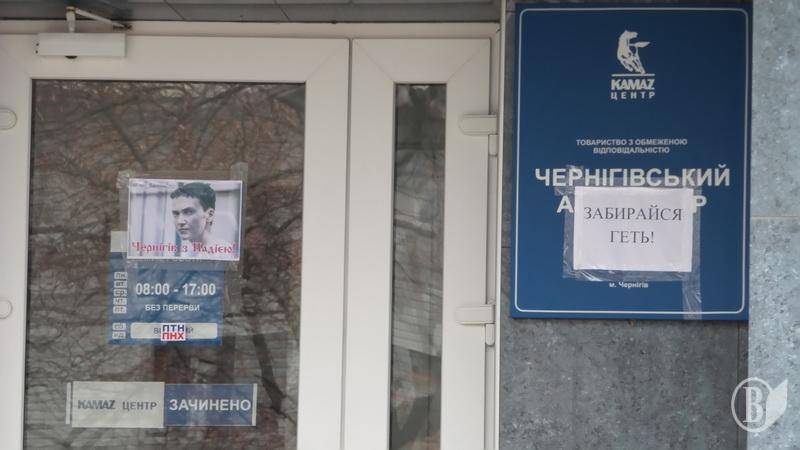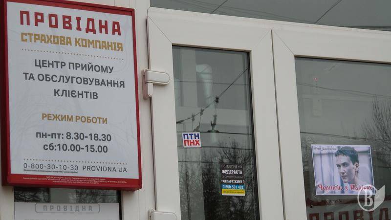 Портрети Надії Савченко і прохання "забиратися геть" з'явилися на дверях страхової компанії "Провідна" (активісти пов'язують її з російською страховою компанією), колишнього КСК, представництва КАМАЗу, центру продажу ГАЗелей і Сбербанку Росії.