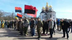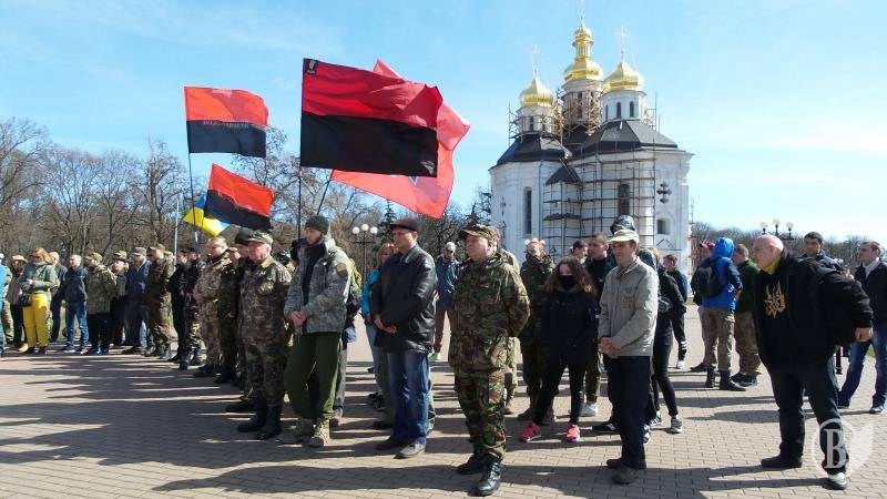 После проведения акции около памятника Борцам за волю Украины поблизости Катерининской церкви, активисты патриотических организаций выстроились и прошли через центр города.