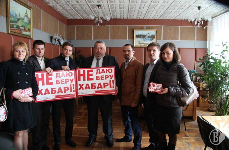 Його начальник Владислав Кухар підтримав акцію, сфотографувався з відповідною табличною та антикорупціонерами.