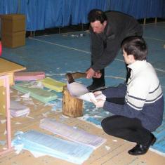 Питання, як відсікати кінчики бюлетенів, викликало невеличку дискусію. Дехто із спостерігачів та членів дільничної комісії ще пам'ятають, як далекого 1998 року, колишній директор школи винайшов ноу-хау: робив це... своєю бензопилою. І швидко, і без зусиль.