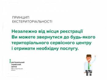 Громадянин незалежно від місця проживання та реєстрації може звернутися в будь-який територіальний сервісний центр і отримати ту чи іншу послугу. Таке нововведення призводить до більш швидкого та ефективного обслуговування.