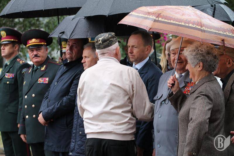 Це міському голові Владиславу Атрошенку можна було довго розказувати про чернігівську історію і найбільш зруйноване місто України. Що він і зробив. Але коли почався дощ, треба було бачити, як дрижала крайня коробка дівчат Академії пенітенціарної служби України!