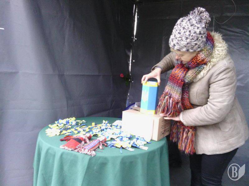 «Ми власними руками зробили патріотичні сувеніри для тих, хто жертвує кошти на таку гарну справу, - пояснила вона. – Волонтери і дружини українських військових, які служили в Криму, створили з жовто-блакитних стрічок серця, банти для дівчаток, а майстрині з Чернігова – ляльки-мотанки. Ціни ми не встановлюємо – хто скільки може, стільки і дає. У магазині такі вироби коштують 15-20 гривень, а тут можна отримати за будь-яку пожертву. Гадаємо, їх вистачить для усіх бажаючих допомогти, адже ми виготовили їх близько 300. Підходять навіть школярі, що приємно».