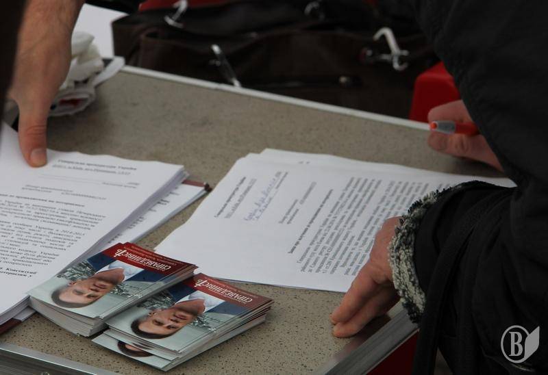 Рух «Справедливість» під час акції протесту в Ніжині також збирав заяви з вимогою притягти до суду владних босів, які переховують корупційні надприбутки за кордоном, в офшорах, а люди в Україні бідують.
