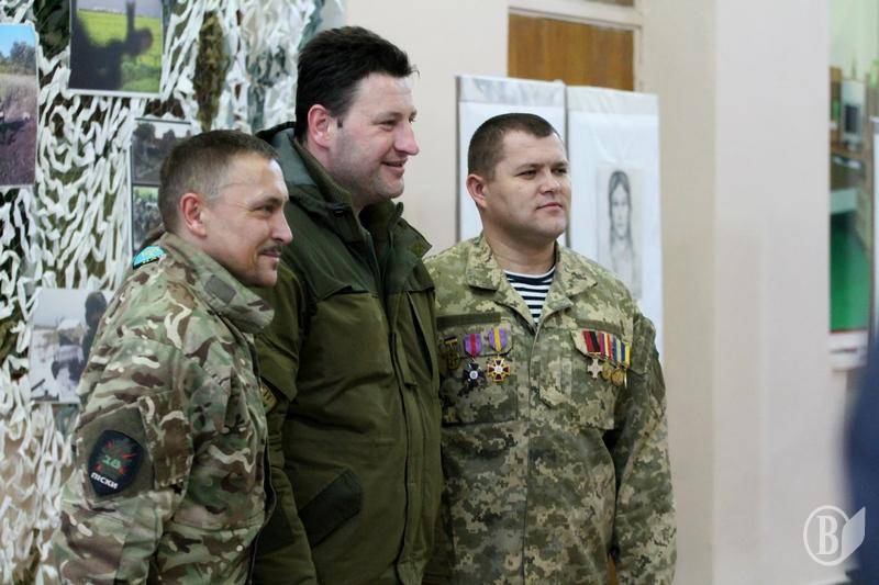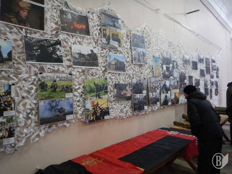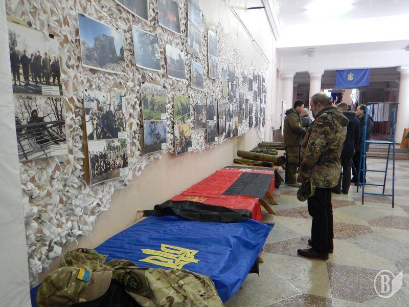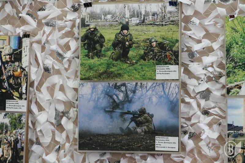 А ті, хто відвідає до суботи виставку, дізнаються: хто такі хлопці з добровольчого українського корпусу ОУН ( Організація українських націоналістів) та що вони роблять на війні з проросійськими найманцями в зоні АТО.