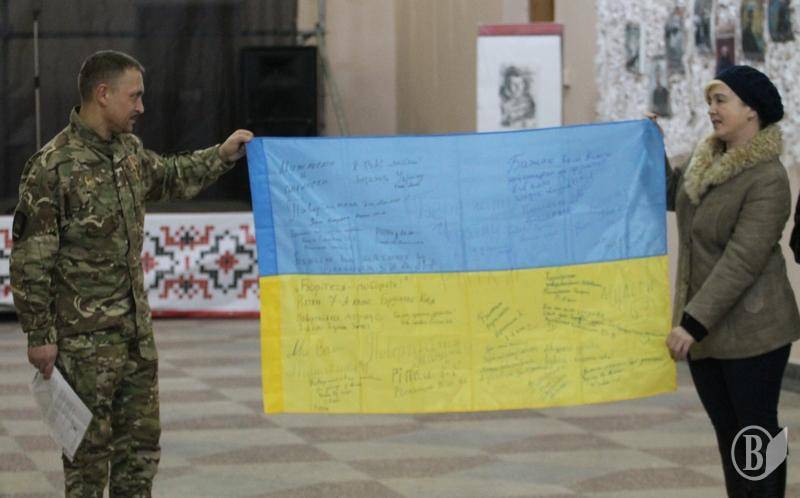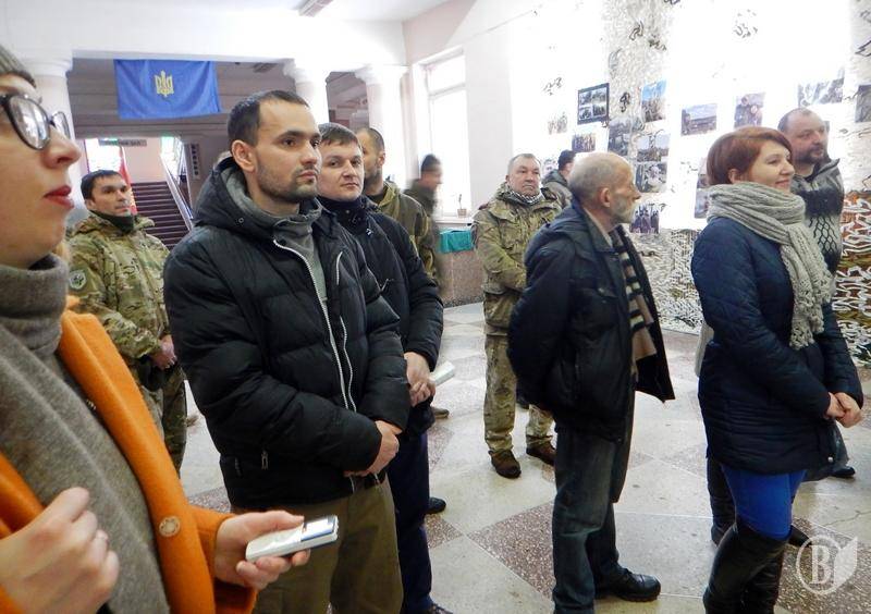 Прийшли бійці добровольчих батальйонів, комбат ОУН, волонтери, які возили і возять допомогу в зону бойових дій, родини бійців АТО.