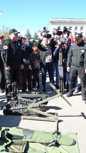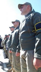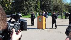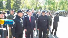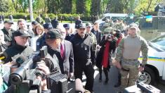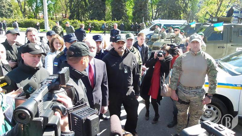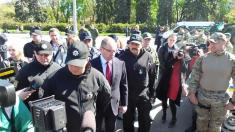 Голова Одеської ОДА Максим Степанов і ректор академії МВС Іван Катеринчук взяли участь у стройовому огляді техніки на Куликовому полі в Одесі за участі сил Нацгвардії, національної поліції, спецпідрозділу КОРД та кінологічної служби, Прикордонної служби, ДСНС і екстреної медичної допомоги.