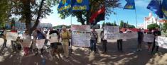 Біля Апеляційного суду Чернігівської області триває акція на підтримку волонтера з Ріпок Віталія Курача.
