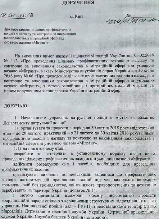 Одним з пунктів є «звертати увагу на автомобілі з іноземною реєстрацією та осіб, які ними керують, з метою перевірки їх на причетність до скоєння ними правопорушень».