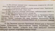 Під час пленарного засідання 13 сесії Чернігівської обласної ради VII скликання обранці області підтримали питання про звернення щодо витівки телеканалу «Інтер» на 9 травня та рекомендували обмежити нічний продаж алкоголю.