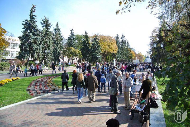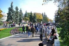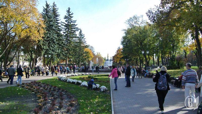 Сьогодні, 14 жовтня, було тепло, світило сонечки й мухи не кусали. У центрі міста гуляло чимало люду з дітьми. На Красній площі, центральною алеєю та древнім Валом.