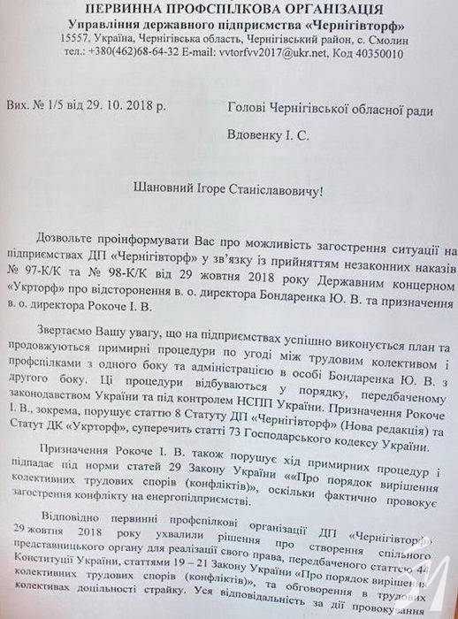 Це відверта неповага до людей, порушення умов колективного договору та Меморандуму про співробітництво між облрадою, ДП «Чернігівторф», Смолинською сільрадою та колективом підприємства.