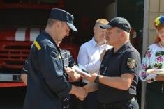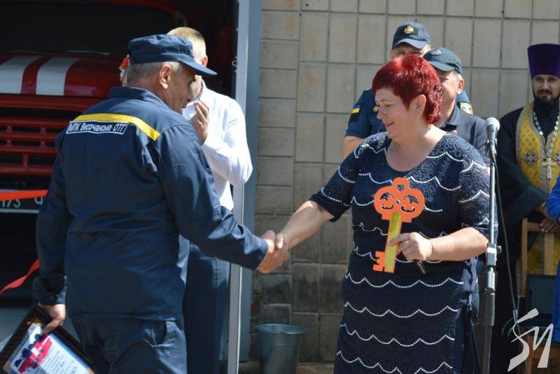 В ході урочистостей особовий склад місцевої пожежної команди отримав від керівництва УДСНС України у Чернігівській області сертифікат і ключі на пожежно-рятувальний автомобіль, посвідчення про проходження спеціальної підготовки, бойові рукавиці від польських колег. Символічний ключ відкриття відремонтованого пожежного депо вручила Любов Норикова.