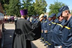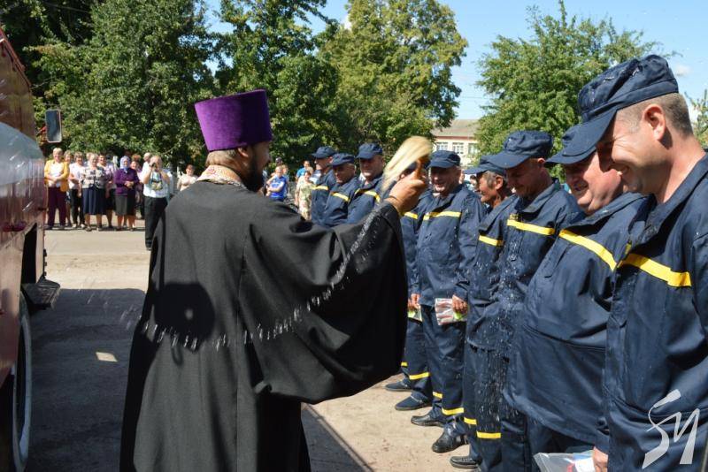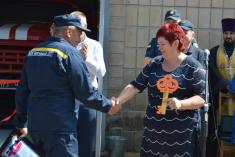 Після урочистого перерізання стрічки з відкриття депо, настоятель місцевої Свято-Успенської Церкви ієрей Степан освятив приміщення місцевої пожежної команди та благословив особовий склад підрозділу.