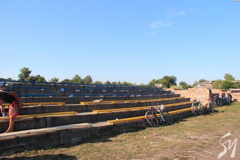 У серпні на селищному стадіоні Талалаївки продовжилися будівельні роботи. Тільки-но закінчилося будівництво футбольного поля зі штучним покриттям, як селищна рада розпочала осучаснення трибун біля новобудови.