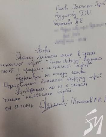 Народний депутат України від "Слуги народу", який переміг на позачергових парламентських виборах по мажоритарному округу №206 Антон Поляков, подав заявупро вступ в партію.