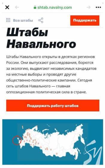 На офіційному сайті команди Навального окупований Росією український півострів Крим внесено на карту як частину Російської Федерації.