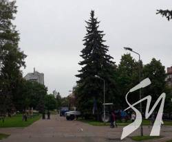 Всі необхідні для зміцнення ялини роботи наші працівники провели в понеділок, 25 травня. Для цього залучали спецтехніку.