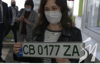 У Чернігові власниця електромобіля отримала перші "зелені" номерні знаки у місті. Такі номери допомагають іншим водіям розпізнати машину з електродвигуном, а власникам користуватися перевагами екологічного транспорту.