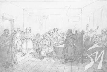Мал.: Тарас Григорович Шевченко. Козацький бенкет, 1838.