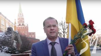 Юдін тримав прапор та квіти, які він згодом поклав до монумента місту-герою Києву. Про це повідомляє УНІАН.