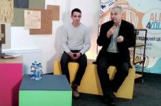 Вікторія УСПЕКОВА, ведуча цього заходу, співробітник Обласного молодіжного центру, у першій частині студійної зустрічі спілкувалася з Юрієм КОНОПЛЬОЮ, учасником Революції Гідності, який тоді вчився в одній зі шкіл м. Чернігів, а зараз магістрант Академії державної пенітенціарної служби України, юридичний консультант Чернігівського обласного молодіжного центру, та Сергієм СОЛОМАХОЮ, громадським діячем, борцем за незалежність України у 20 столітті, активним учасником Помаранчевої революції та Революції Гідності.
