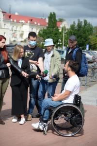 «Ми не акцентуємо увагу на тому, що людина на візку. Простір має бути доступним для всіх. Ми спонукаємо до активного життя: щоб люди з маломобільних груп населення не сиділи вдома і повноцінно насолоджувались життям, незалежно від того, чи є у них порушення здоров’я. Це стосується і батьків з маленькими дітьми: ти можеш жити активно, і простір довкола має бути зручним, бо немає людей з обмеженими можливостями — є простір, що обмежує можливості. Коли ти гуляєш, то маєш насолоджуватись містом, а не думати, як подолати перешкоди на шляху» — зазначив засновник організації Дмитро Щебетюк.