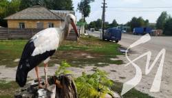 У селі Кобижча, що у Чернігівській області, у центрі поселення оселився лелека, який не боїться людей.