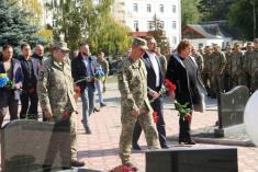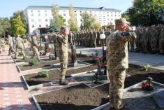 Присутні представники органів державної та місцевої влади, військовослужбовці та інші поважні гості вшанували хвилиною мовчання своїх полеглих побратимів та поклали живі квіти до місцевого меморіалу Слави, зокрема 45 військовослужбовців бригади з початком бойових дій віддали найдорожче - своє життя за щасливе майбутнє українського народу. Водночас військовий капелан отець Антоній відслужили поминальну літію за загиблими воїнами.