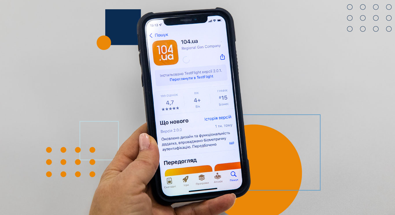 Компанія 104.ua оновила мобільний додаток, інтегрувавши його зі штучним інтелектом. У користувачів з'явилася можливість передати інформацію про спожитий газ, просто сфотографувавши лічильник. Достатньо обрати у меню пункт «показання» та «сфотографувати лічильник», зробити фото так, щоб було видно показання, типорозмір і номер лічильника на корпусі, і передати його. Також додаток дозволяє відстежувати споживання газу за три роки, завантажувати квитанції, замовляти зворотний зв’язок.